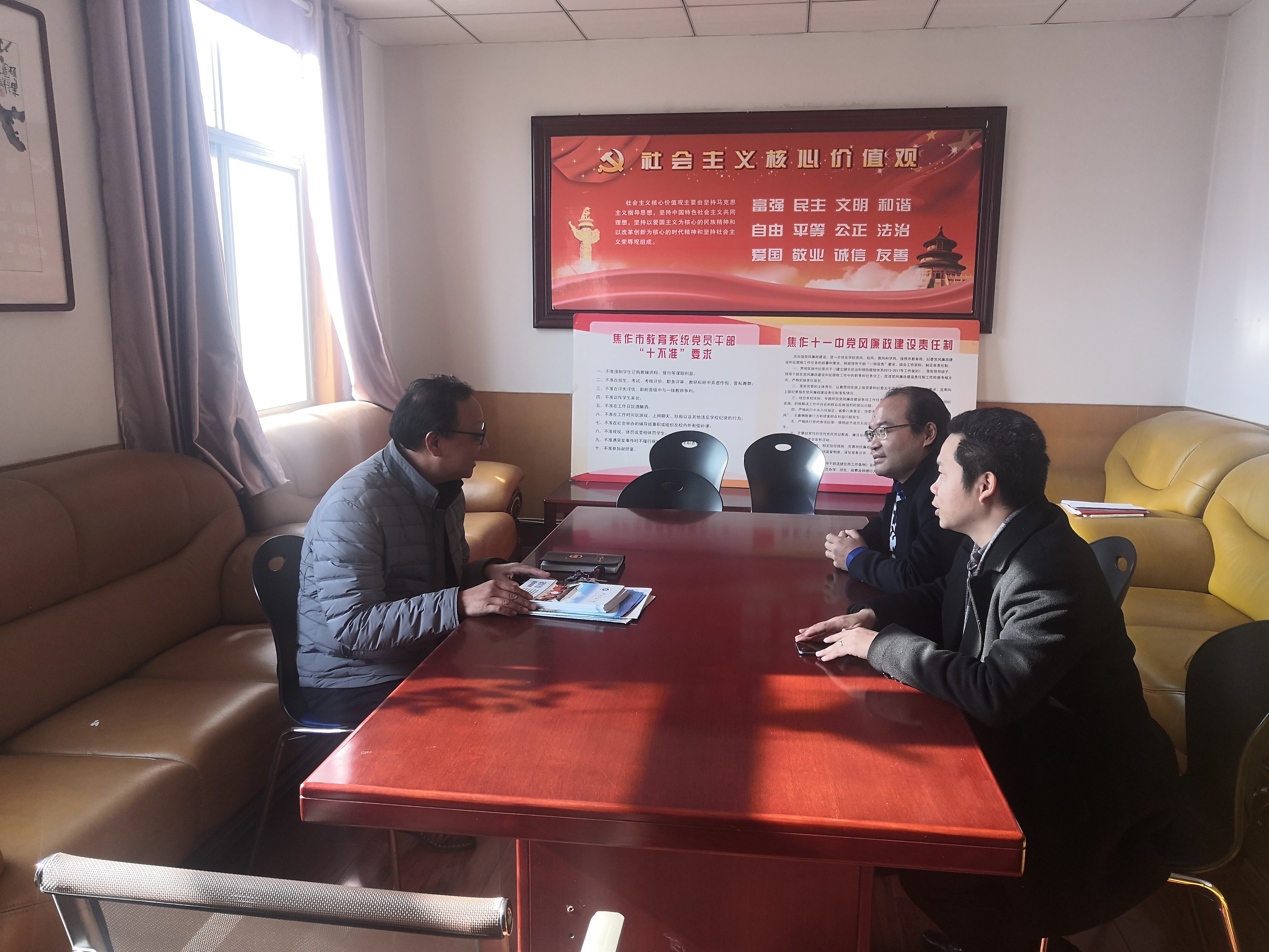在回访过程中,学院领导同焦作市十一中、十二中领导进行了深入交流,向该校领导详细讲解了近两年我校录取该校学生情况,介绍了我校的办学特色和近几年学校整体招生状况。焦作市十一中、十二中领导对学校专门委派老师到校进行回访宣传表示感谢,表达了进一步巩固好优质生源基地建设的意向。