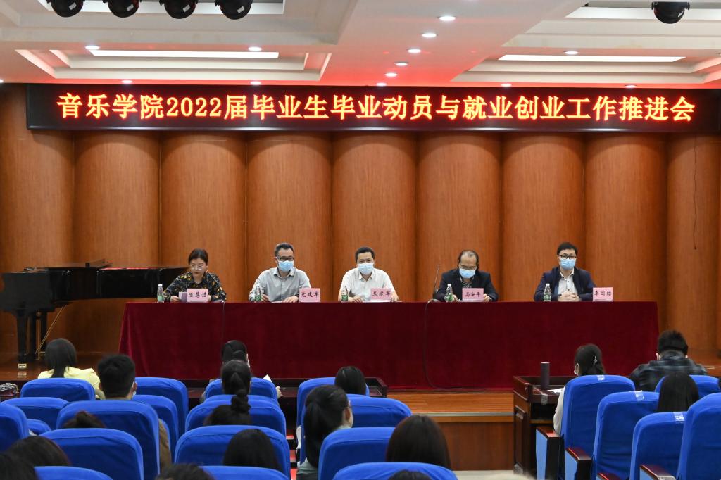 会上,招生就业处就业管理科科长党建军应邀作就业政策宣讲。我院学工办主任李团结安排部署学院2022届毕业生就业帮扶相关工作,并强调通过实施“一对一”精准帮扶、加强师生沟通联系等方式助力毕业生积极就业。随后,我院副院长马安平作毕业动员,他指出,在临近毕业这段时间里,学生要认真完成毕业论文、积极准备毕业音乐会,同时扎实推进素质拓展学分认定和毕业资格审核。会议最后,我院党委副书记王建军作总结发言,他对毕业生提出了三点要求。一是要正确认清形势,坚定就业信心。二是转变就业观念,做好就业准备。三是充分挖掘潜能,抢占就业主动。他鼓励同学们要正确定位,积极将个人理想与国家战略、社会需求、行业需要紧密结合起来。