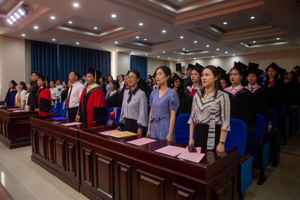 副院长孙娟、马安平分别为所有获得硕士学位、学士学位的同学们一一拨正流苏、颁发学位证书并合影留念。