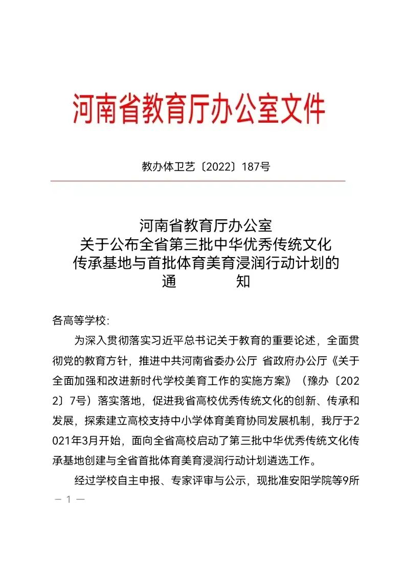 近日,河南省教育厅办公室印发《关于公布全省第三批中华优秀传统文化传承基地与首批体育美育浸润行动计划的通知》,我院黄河泥埙成功入选河南省第三批中华优秀文化传承基地!